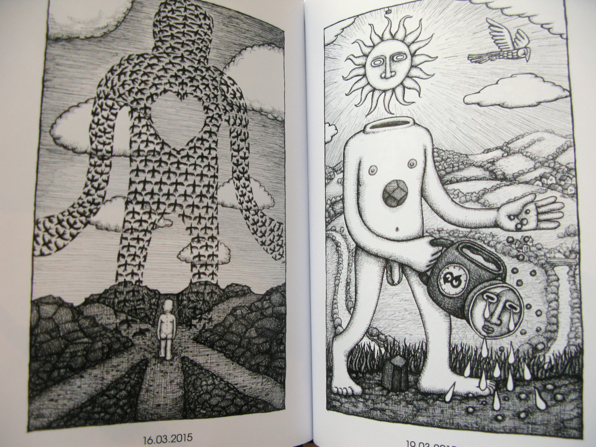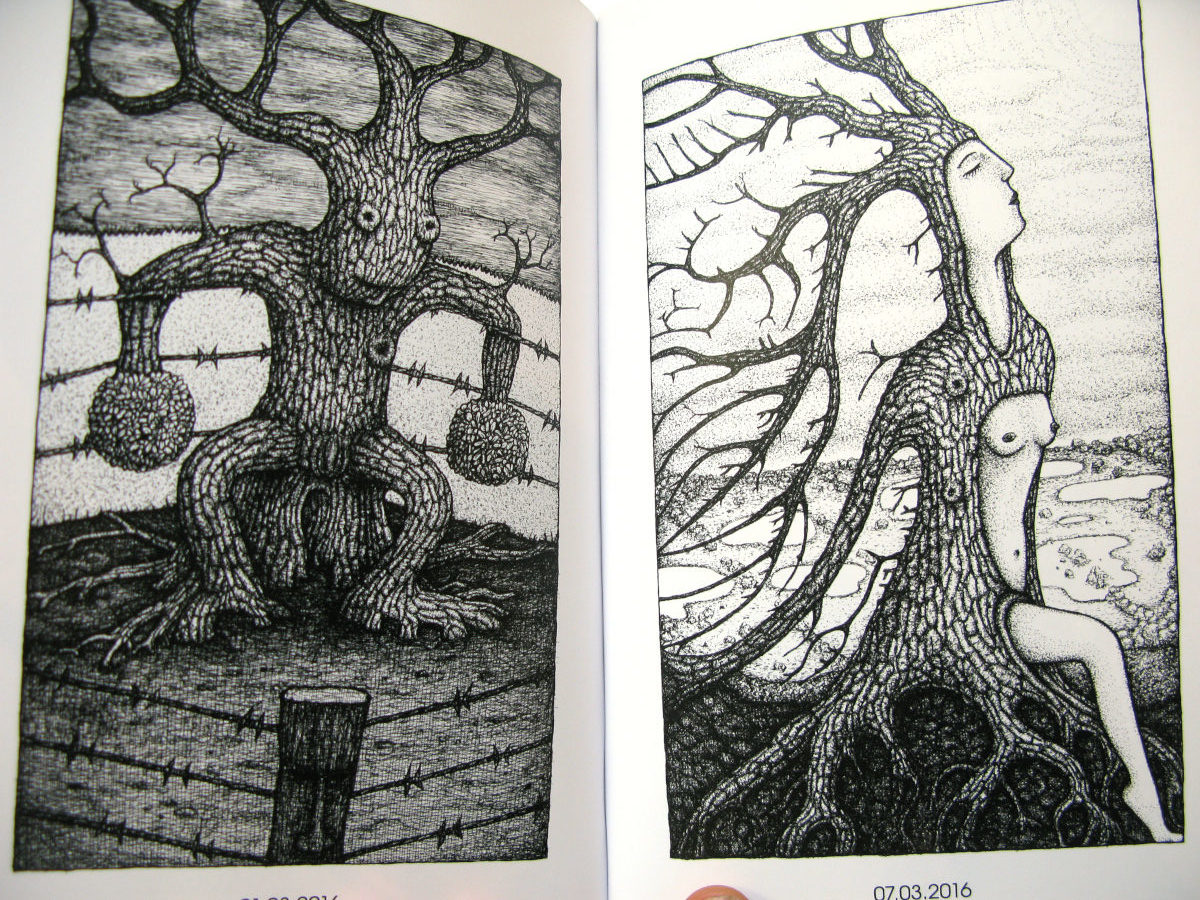Dans le cahier de dessein la vie, l’amour, la mort, la naissance, s’entremêlent.